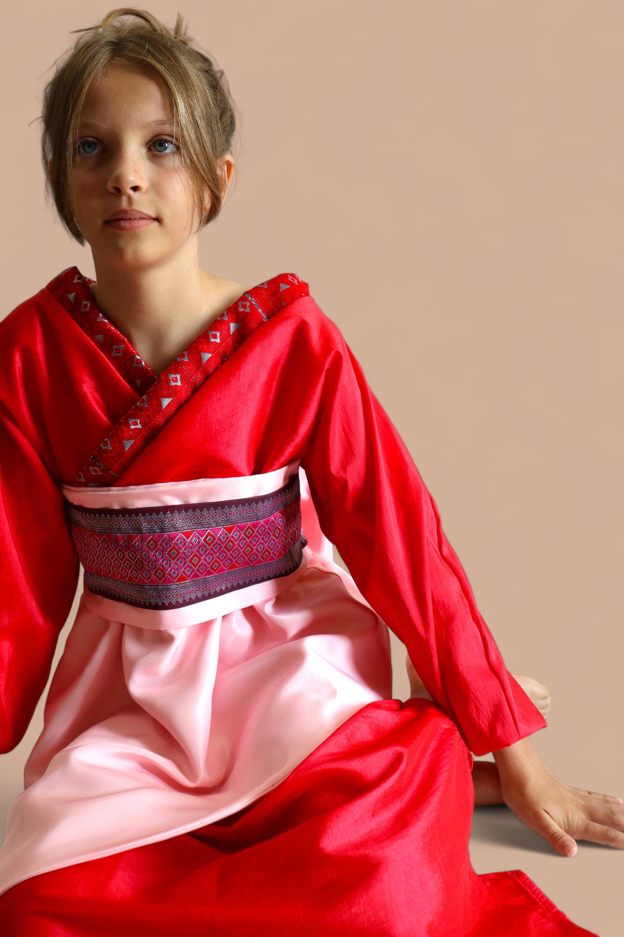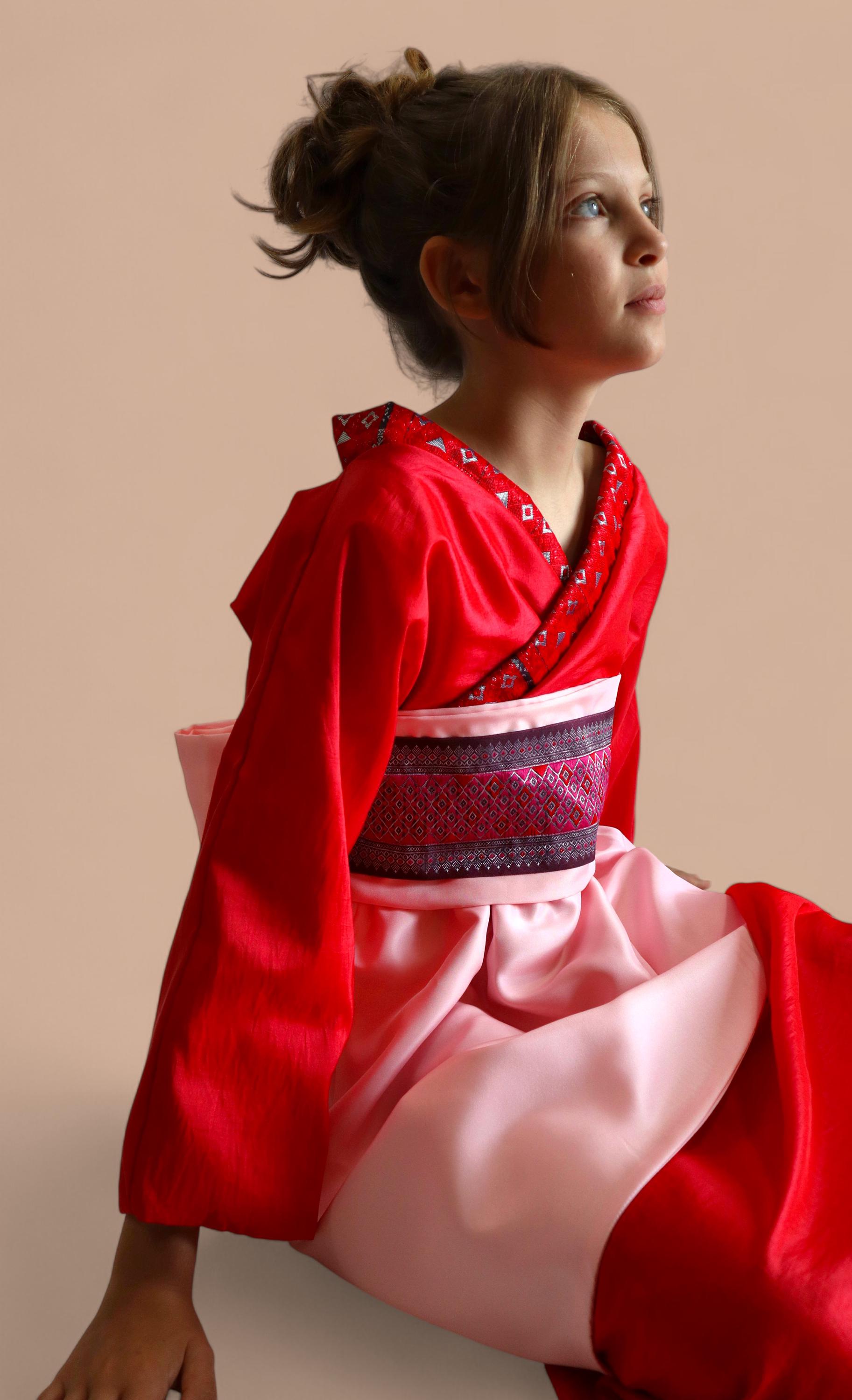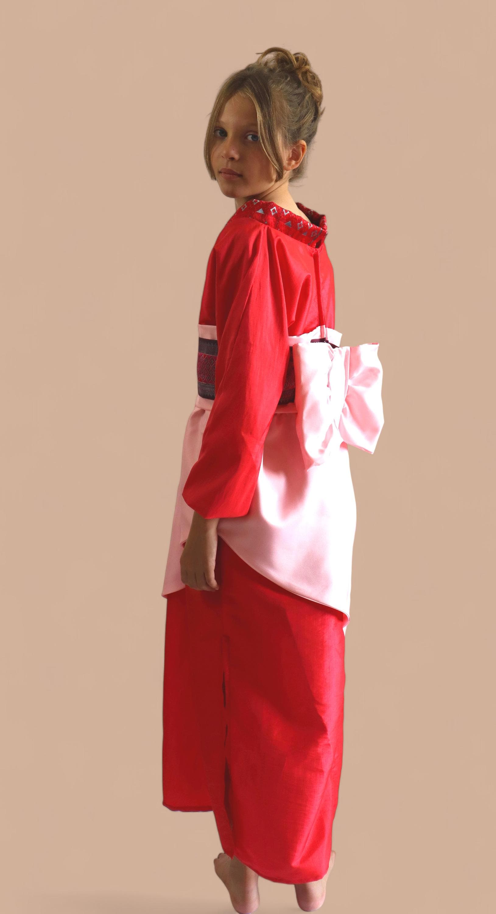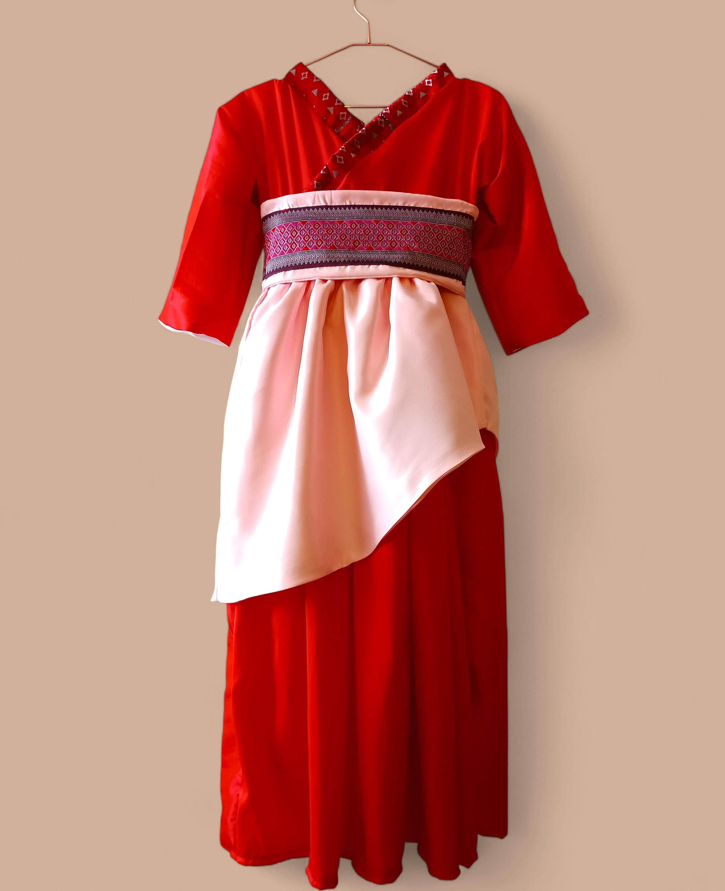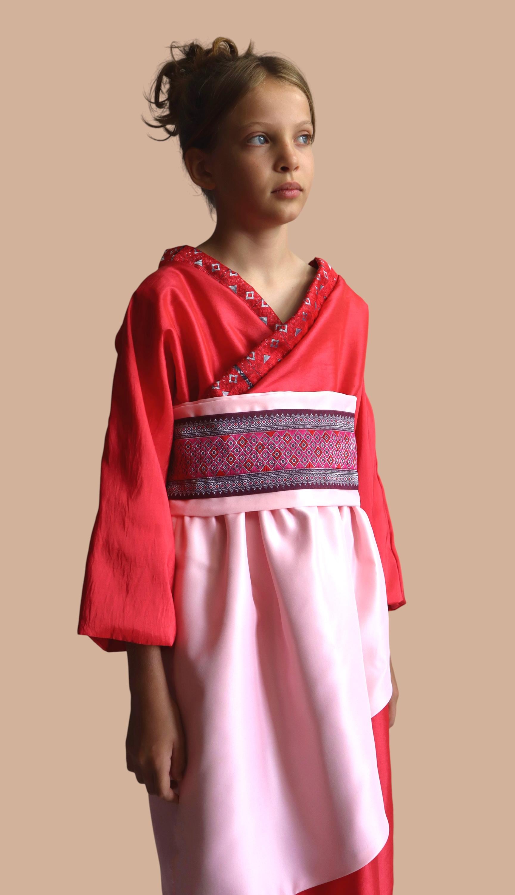 Step into the world of Eastern legends with this stunning princess dress inspired by the iconic Mulan. With its graceful lines, luxurious fabrics, and delicate details, this costume beautifully combines elegance and tradition, perfect for little dreamers.